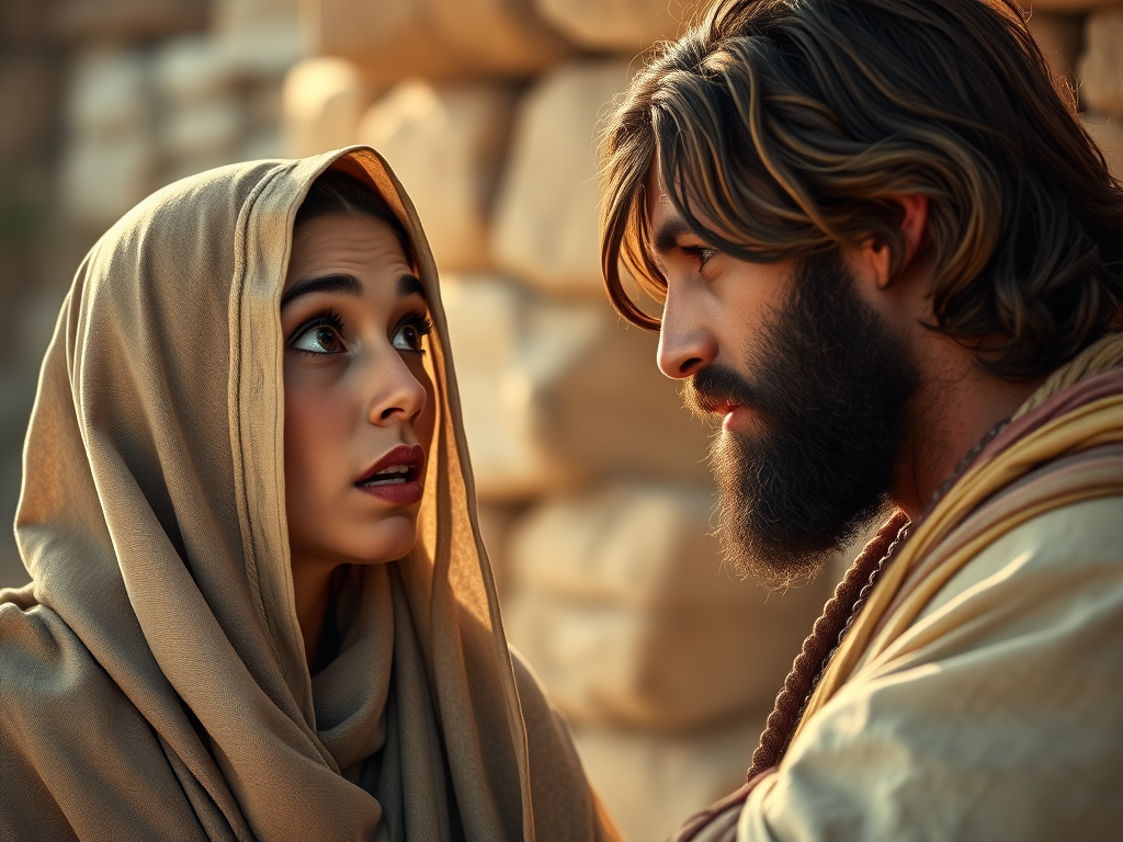 Entonces prefirió decir que no tenía, pero Jesús le dijo que era verdad porque ya había tenido cinco maridos y el que tenía tampoco era su marido. Esta respuesta de Jesús sorprendió a la mujer, puesto que era la primera vez que le veía. Entonces, ¿cómo sabía su pasado?