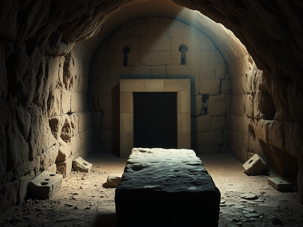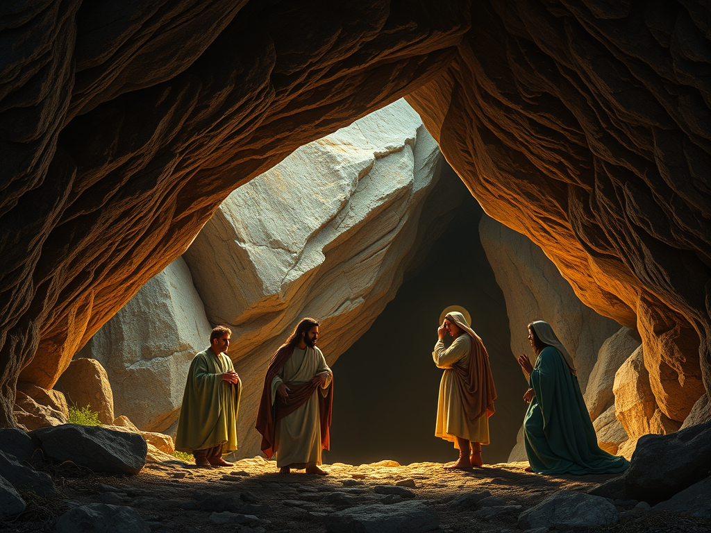 Jesús, otra vez muy conmovido, se acercó a la tumba. Era una cueva, cuya entrada estaba tapada con una piedra.